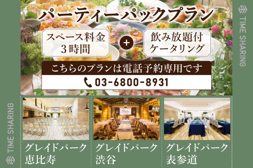次のパーティの幹事を任されたら、ぜひタイムシェアリングの「パーティパックプラン」をご検討ください。
