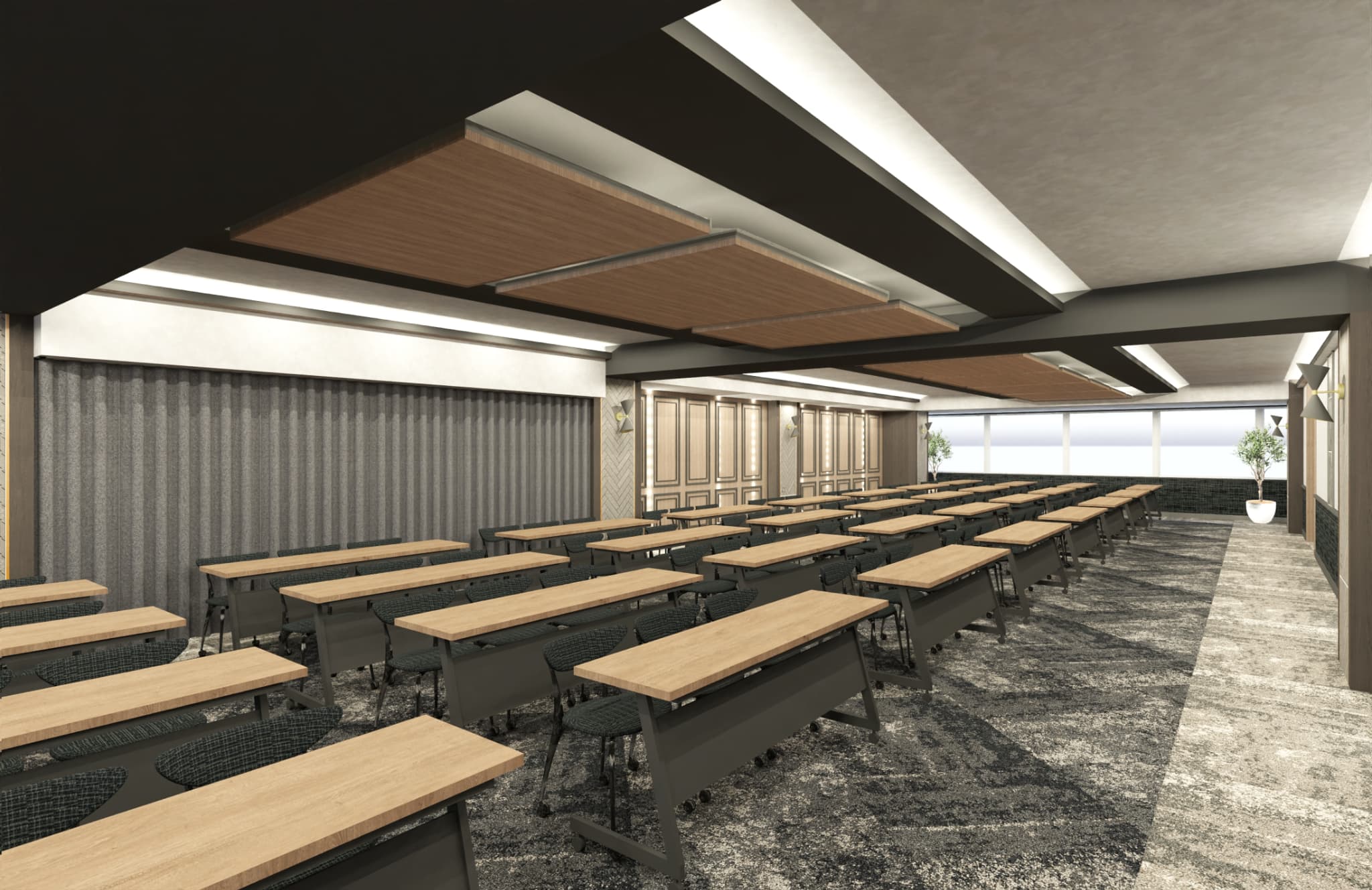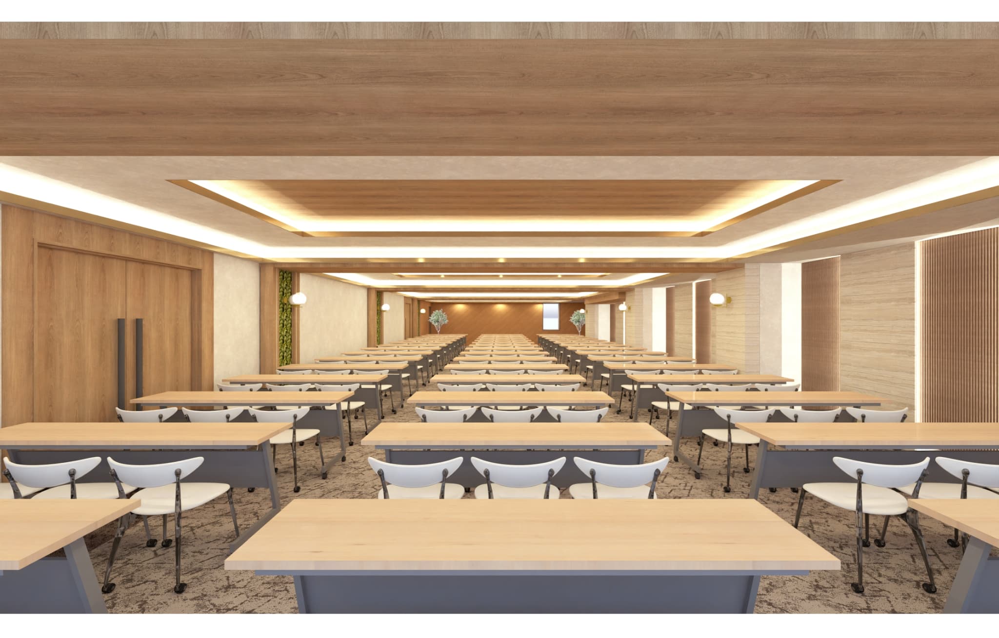 スクール形式で最大108名を収容可能で、大規模な研修やセミナーの開催にも適しています。