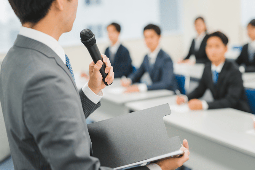 社外向けセミナーやワークショップの後、参加者同士の名刺交換や交流の場として活用。