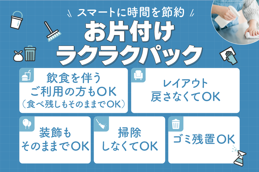 3. お片付けラクラクパック付きで幹事さんも安心